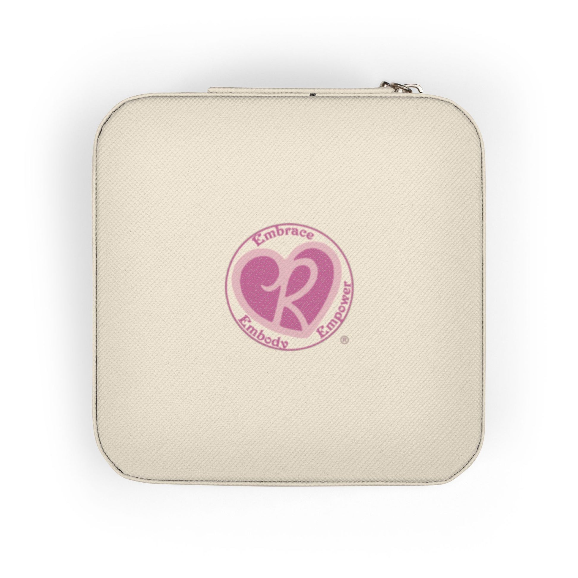 A compact jewelry travel case designed to keep treasured pieces safe and organized on the go. The soft PU leather exterior and plush fabric lining cushion rings, studs, and necklaces, while a zip-around closure holds everything neatly inside. Inside, four divided compartments, dedicated ring rolls, and three necklace hooks create order and prevent tangles. Sized at 4" x 4" x 2", it slips easily into a handbag or carry-on without weighing you down. Subtle UV-printed decoration adds a personalized, refined touch to the petite design.